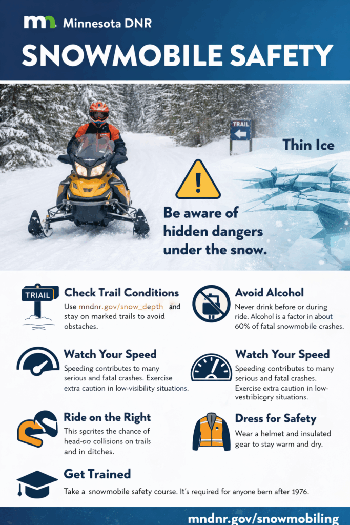 With winter hanging on across northwest Minnesota, riders are taking advantage of rideable snow on trails, frozen lakes, and road ditches. The Minnesota Department of Natural Resources is reminding snowmobilers
