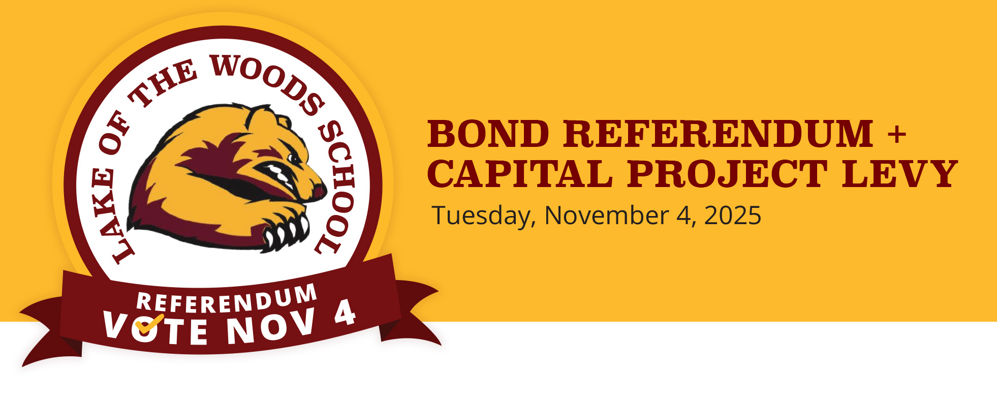 Early voting can be done Monday, Nov. 3 from 7:30 AM to 5:00 PM at the Lake of the Woods Government Center on 206 8th Ave SE Baudette, MN. Regular voting starts Tuesday, Nov. 4 from 7:00 AM to 5:00 PM. For more detailed information on the referendum, visit lakeofthewoodsschool.org.