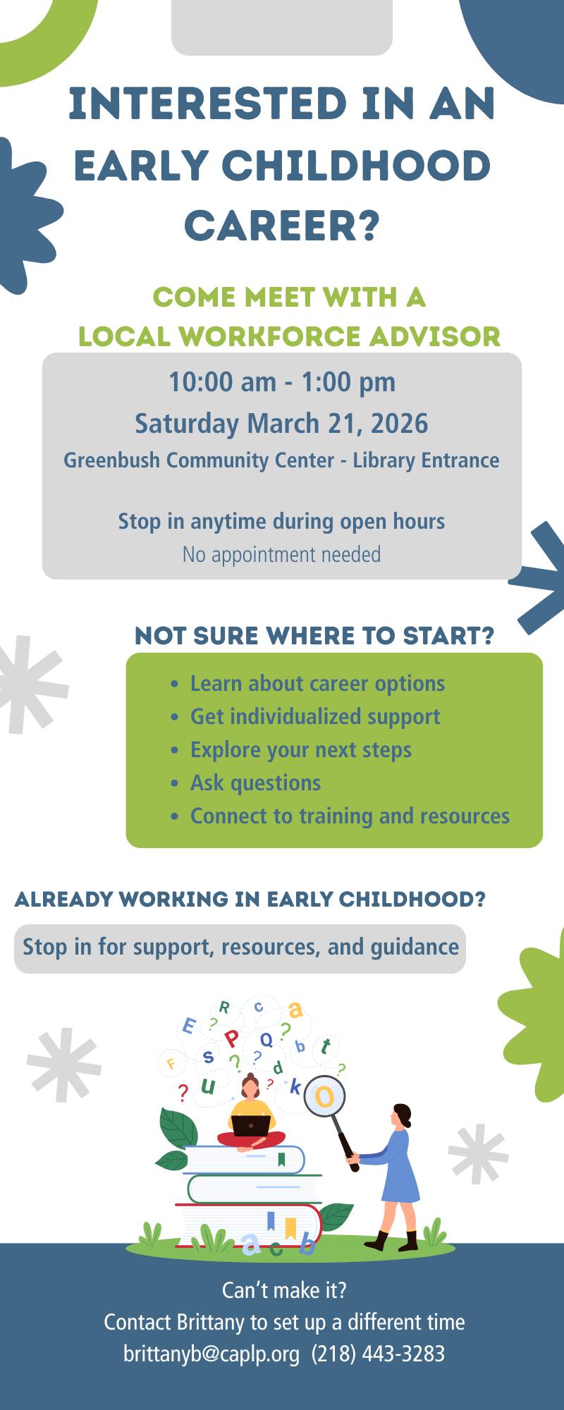 A local workforce advisor will be available this morning Saturday, March 21st at the Greenbush Community Center, from 10 a.m. to 1 p.m.